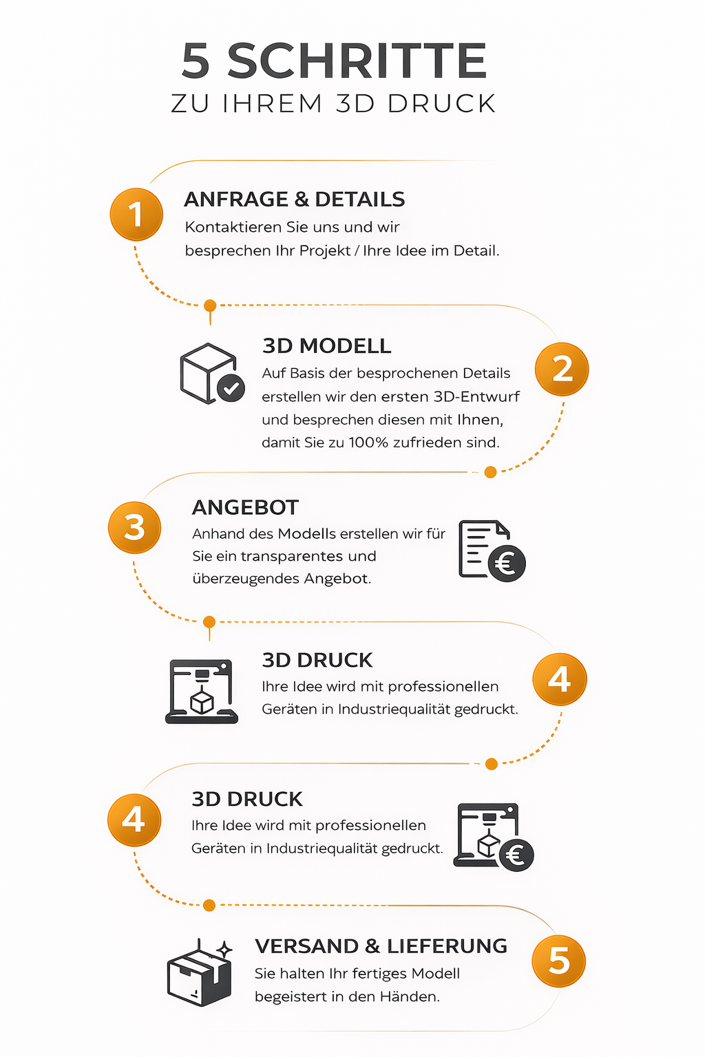 In 5 klaren Schritten begleiten wir Sie von der Idee bis zum fertigen Modell.